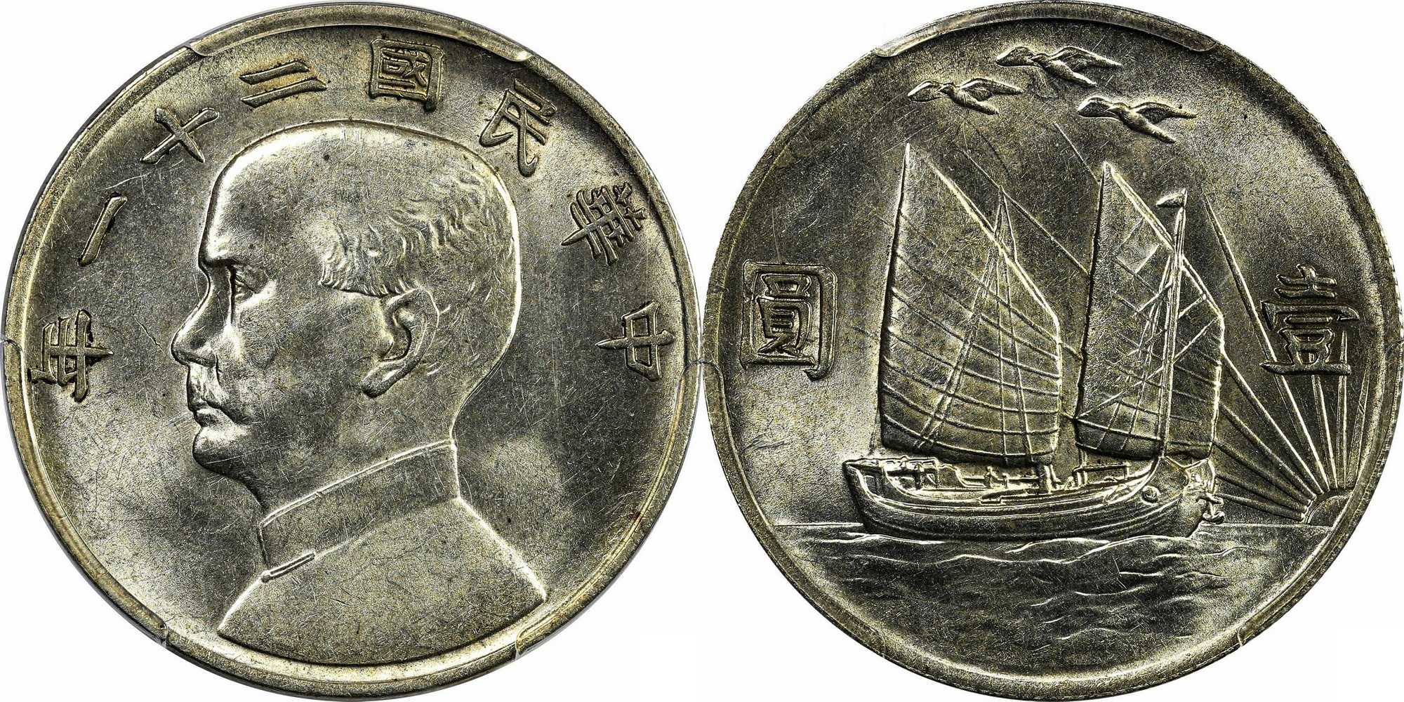 民国二十一年孙像帆船上三鸟 壹