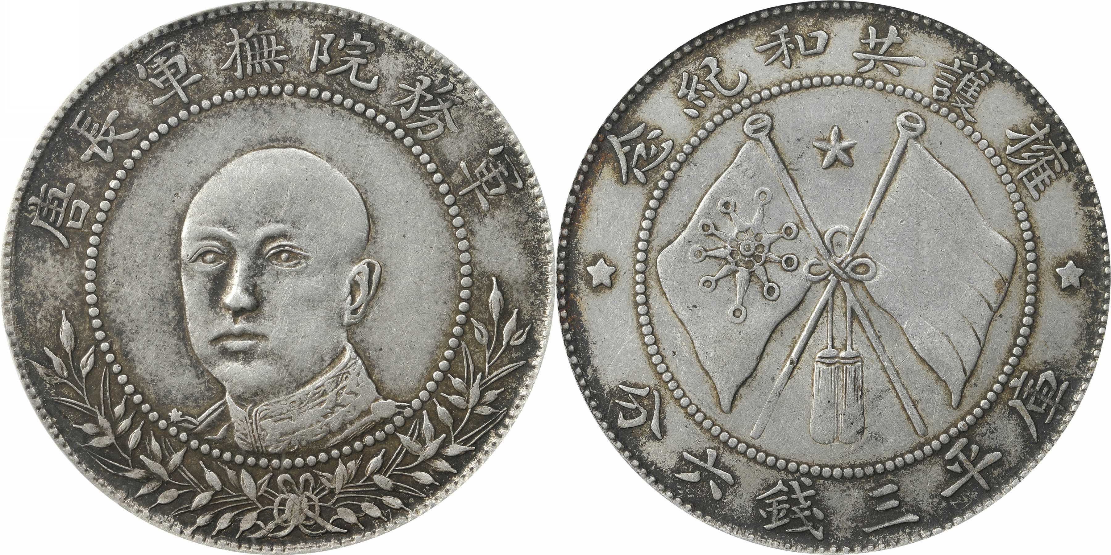 民国 唐继尧正像 三钱六分银币