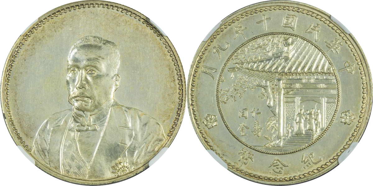 民国十年徐世昌像仁寿同登纪念银币一枚,Y-676/LM-864。类镜面版底,刻模深峻,铸造细致精美,银光明亮,淡彩原光。极美品。