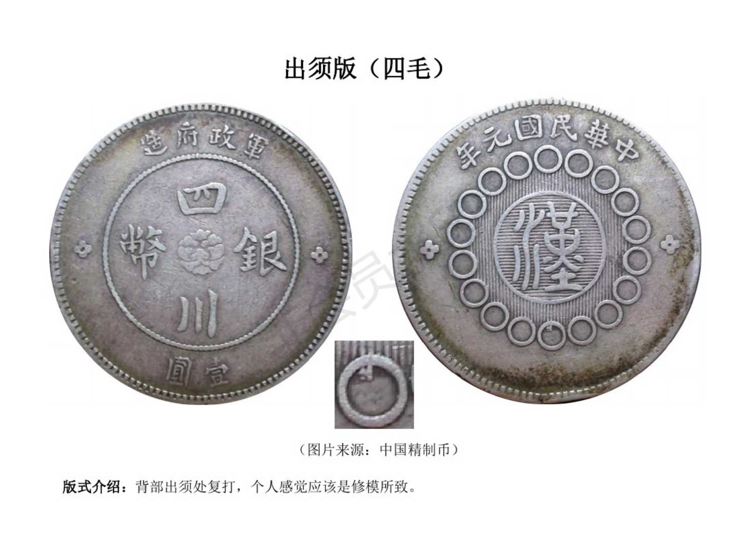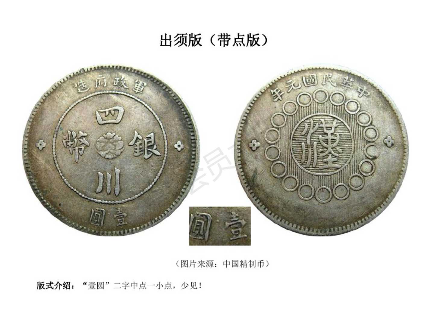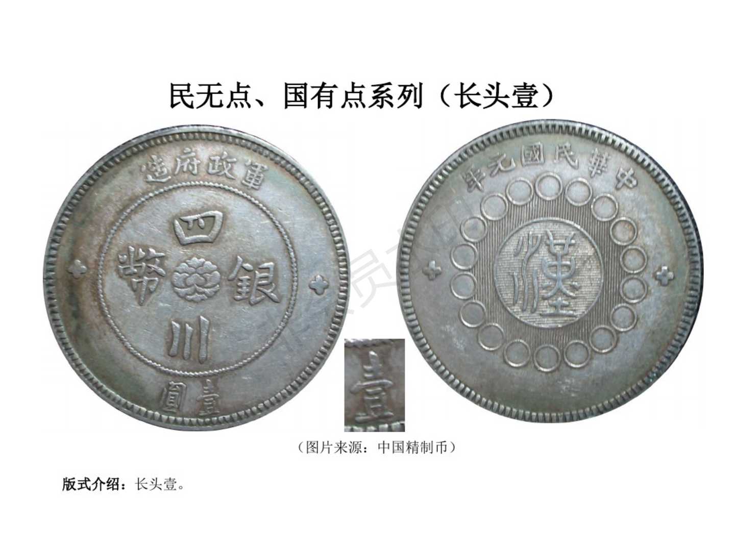 1.民国元年(1911)12月四川军政府成立,废除前清龙模银币,创四川银币模型。