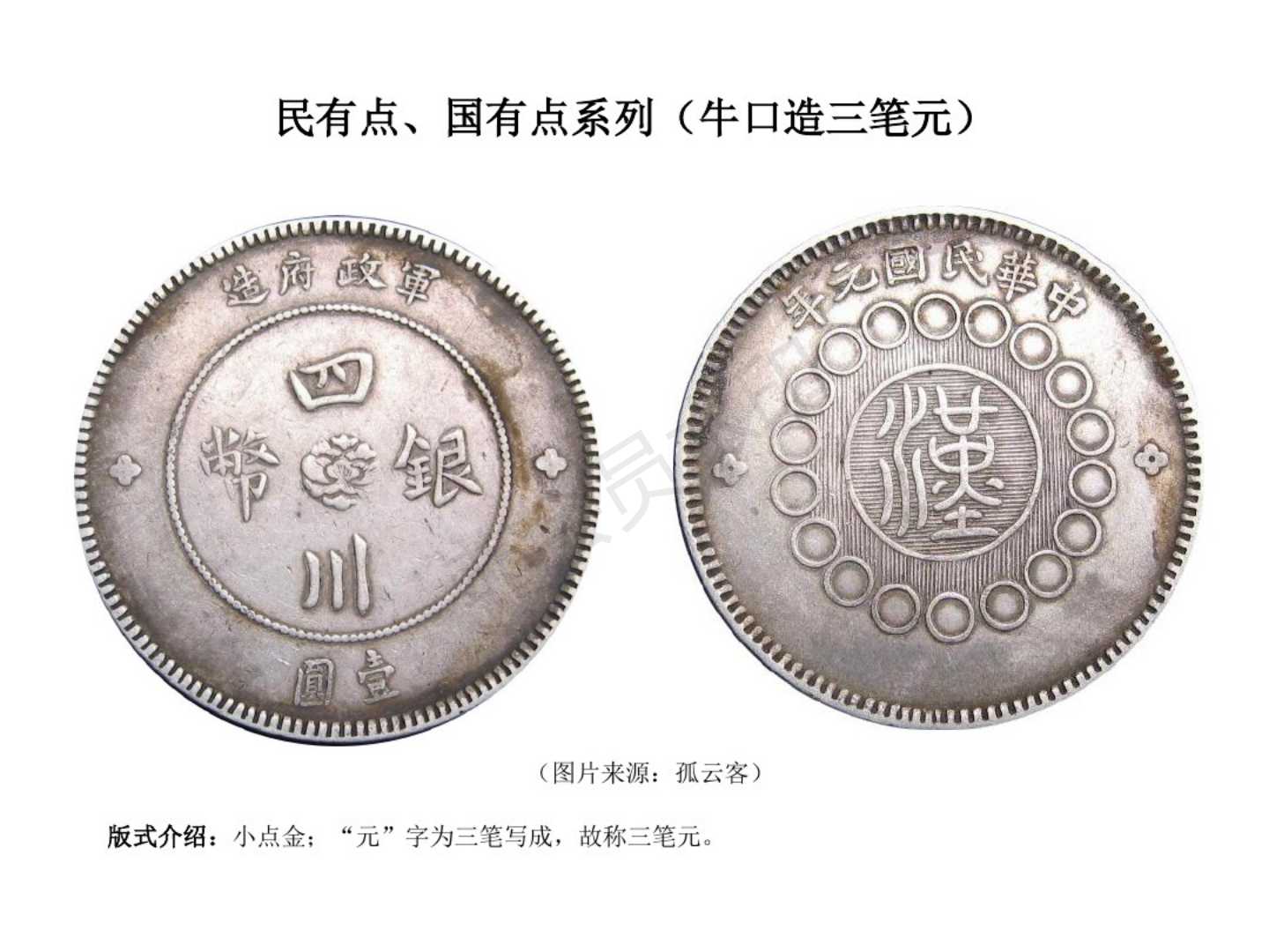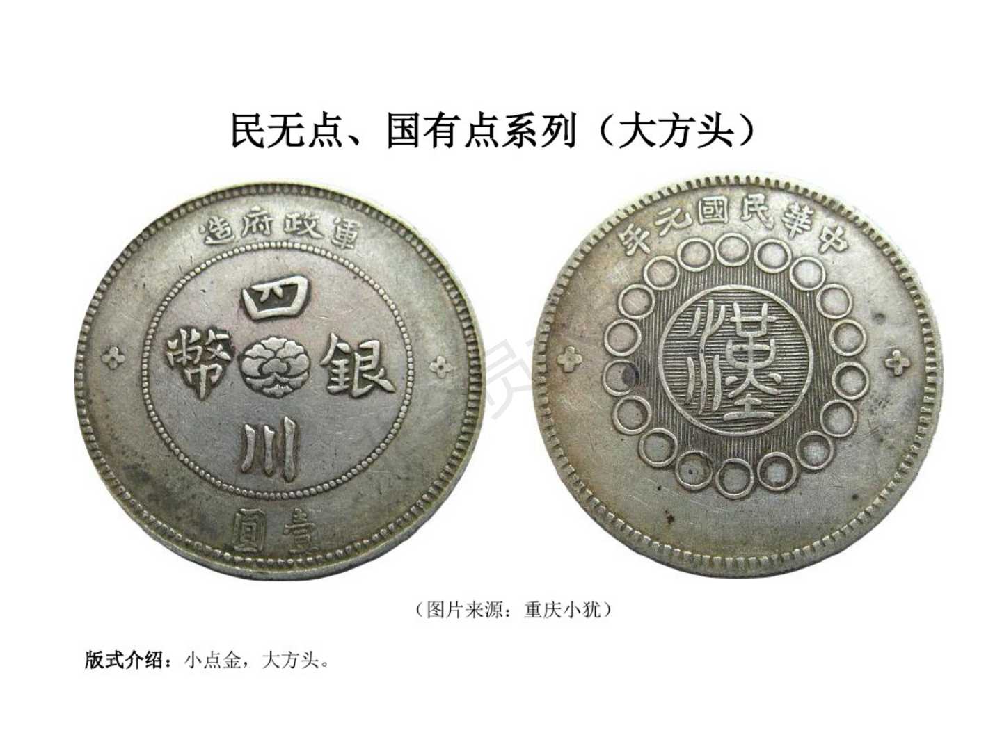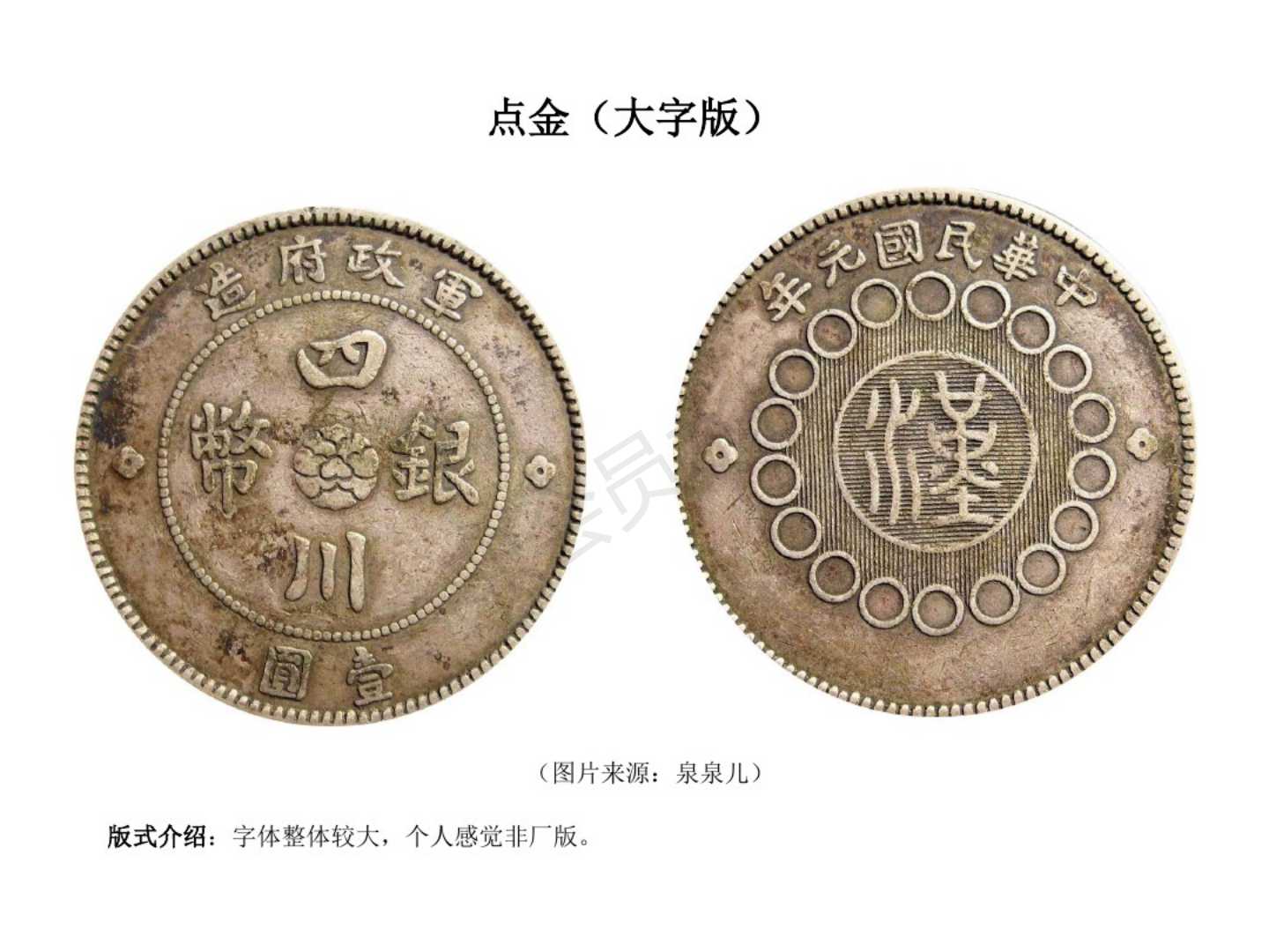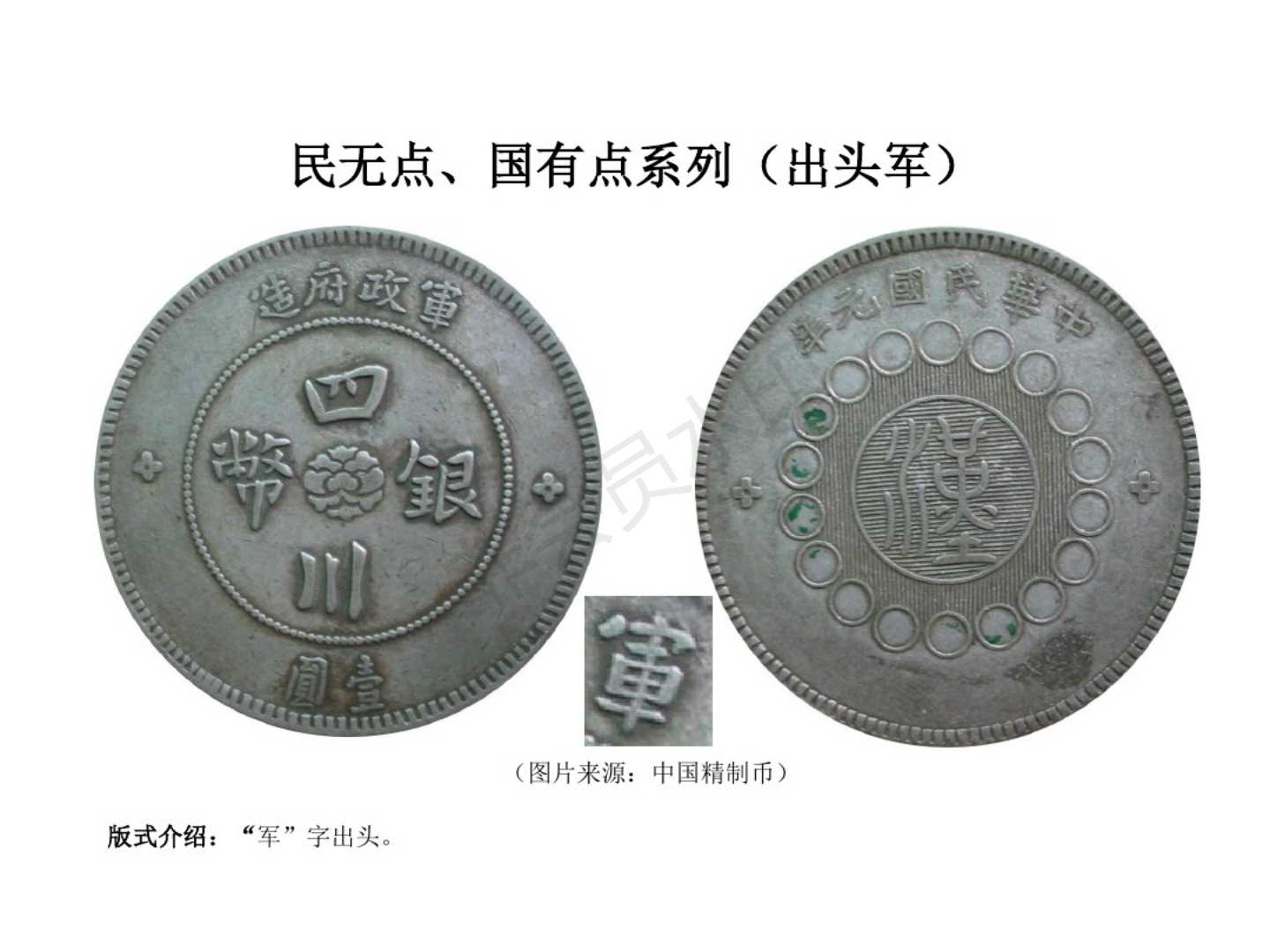 1.民国元年(1911)12月四川军政府成立,废除前清龙模银币,创四川银币模型。