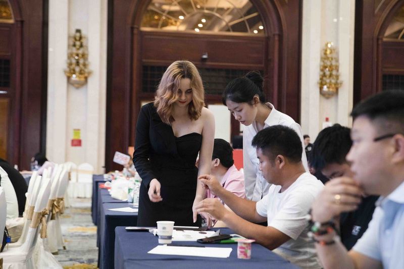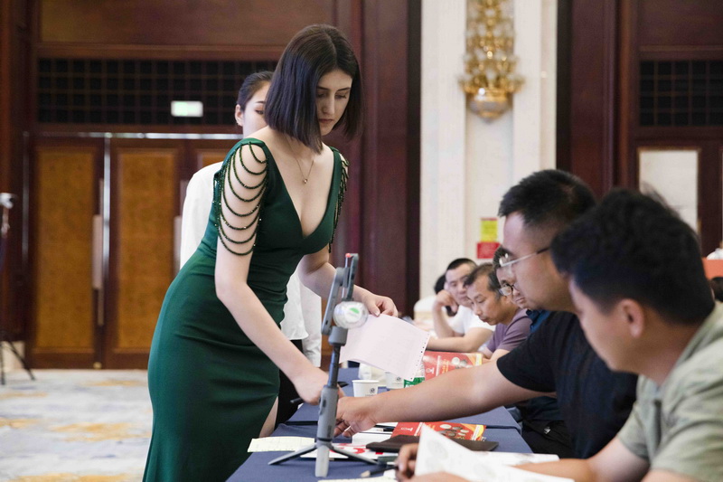6月26日上午9:30迎来了我们正式的开拍,与往期惯例不同的是,我们引入了西方美女对我们中国文化工作的参与,现场聘请俄罗斯乌克兰等国的美女,现场送签成交单,中西文化的结合使拍卖会现场氛围异常融洽,别有一番独特风味。